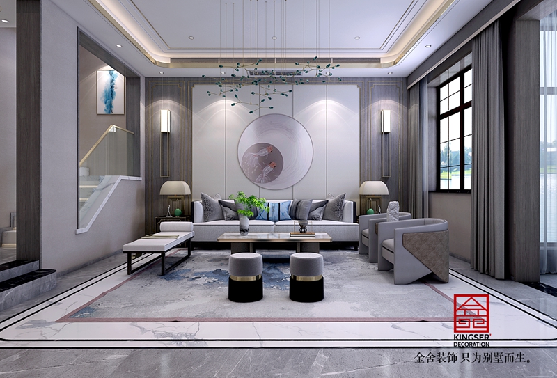 金碧天下現代輕奢風格別墅裝修客廳效果圖