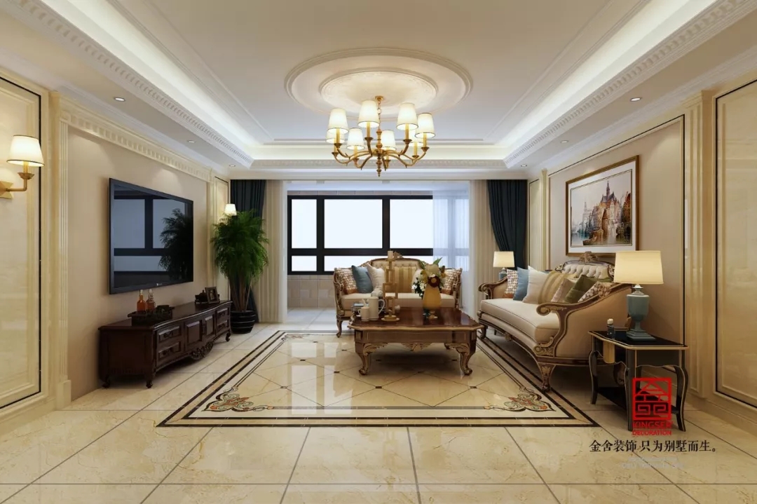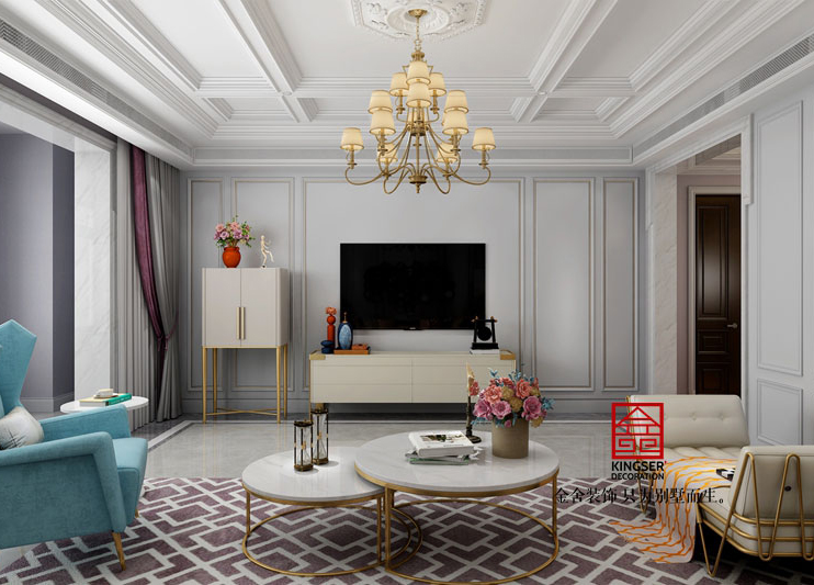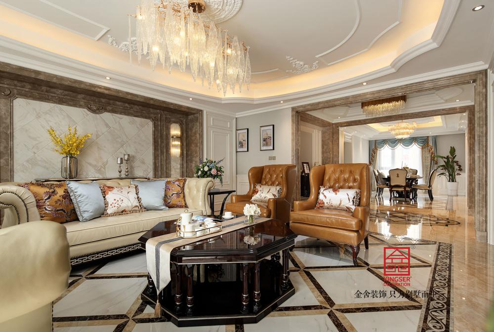 天海譽天下217平裝修-美式-客廳