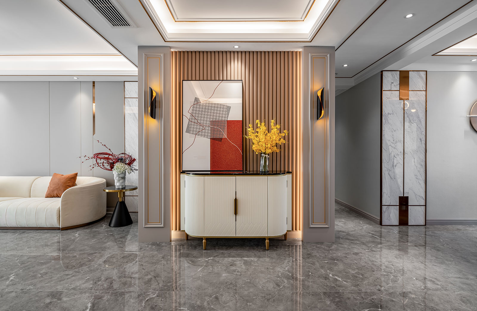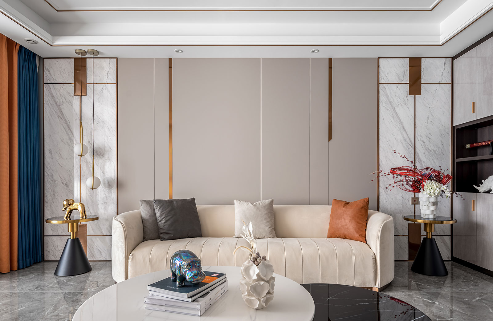 東南智匯城191㎡美式輕奢實景 淡淡暖灰色讓靜謐成為空間主導 美式的優雅,輕奢的精致 金舍裝飾只為別墅而生