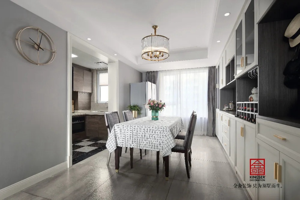 根據客廳和餐廳區域的面積選擇同種款式燈具的不同尺寸,加強空間中的風格元素,會使空間看起來很整齊劃一,在小編看來選擇這個方法是最不會容易出錯的。