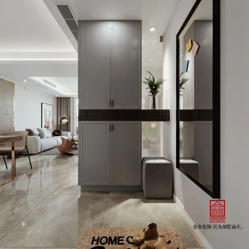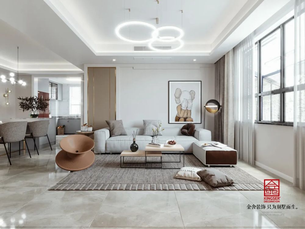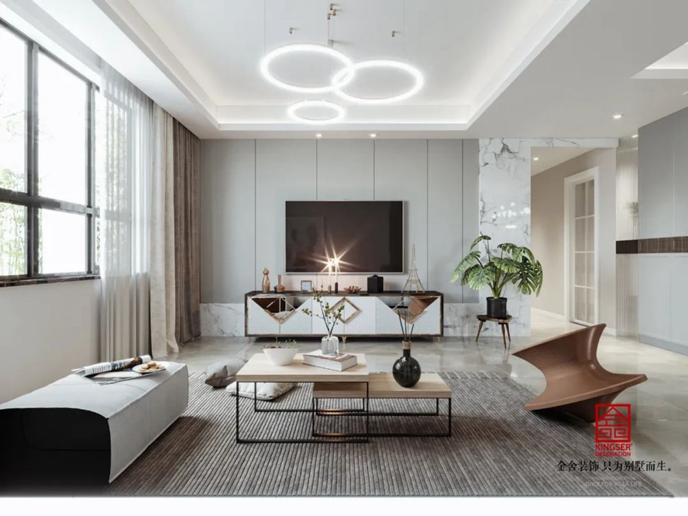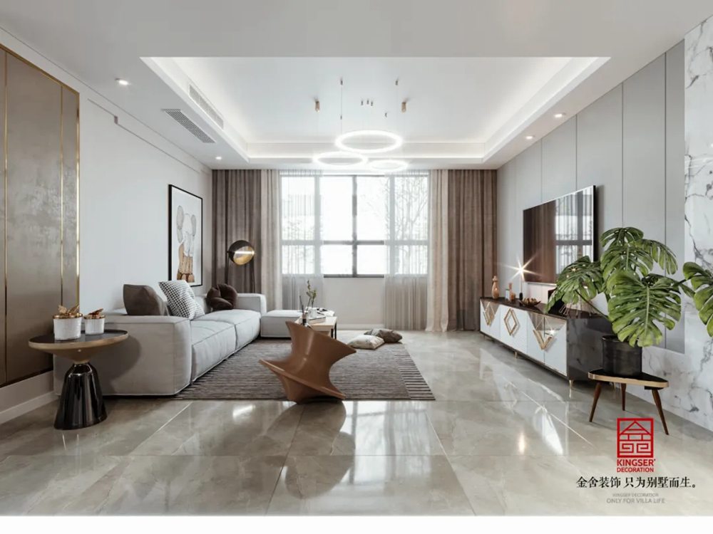 石家莊金舍裝飾-融創(chuàng)中心137平米輕奢風(fēng)格裝修案例賞析。生活原本就該屬于寧靜,當(dāng)我們置身于繁華都市太久,自然會想要抽身剝離,去追尋內(nèi)心的閑適與平和。一個優(yōu)雅舒適的家,除了擁有優(yōu)質(zhì)的地理位置與人性化的社區(qū)管理以外,還需要精致的軟裝設(shè)計來裝點生活。輕奢是一種高格調(diào)的生活態(tài)度,正是年輕人所需要的生活品質(zhì),輕奢生活,精致到老,對于現(xiàn)代人,尤其是當(dāng)下的年輕人們而言,切實給了人們心靈的觸動。