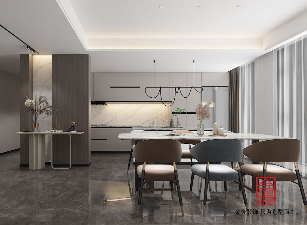餐廳和客廳之間的通道:餐廳和客廳只有兩到三扇門,非常理想。當餐廳和客廳之間有一條寬大的走廊時,石家莊家裝公司也允許在走廊上適當設置裝修。如果寬度和長度都允許的話,可以考慮做一個餐具柜和搭配盆景裝飾是常見的方法。但是,如果一個空間里有三個以上的門,通道會占用更多的面積,所以家具的位置可以相對減少,所以要在兩者之間保持平衡。