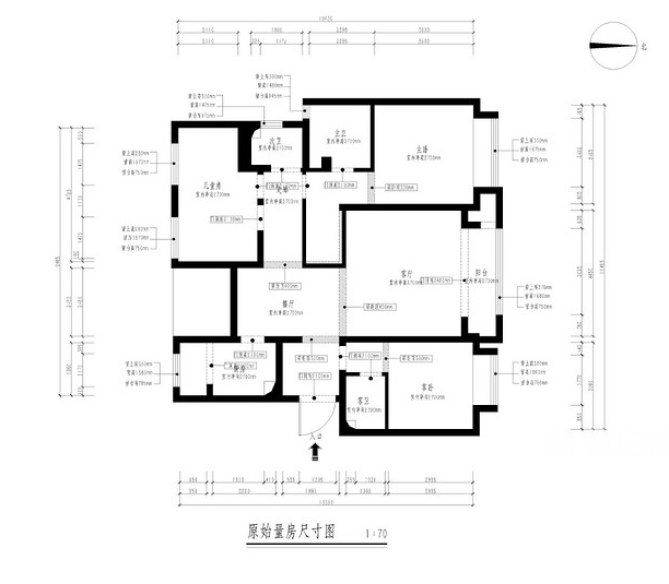 此戶型采光比較好,但是各個空間功能區域分布不明確,空間利用不充分。主臥的衣帽間空間狹窄
