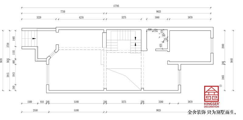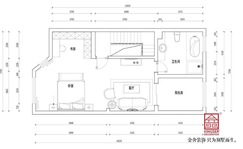 二層:在挑空區(qū)域的兩邊新砌了墻體,使得兩間臥室增強(qiáng)私密性,同時(shí)也使一層的挑空更完整。