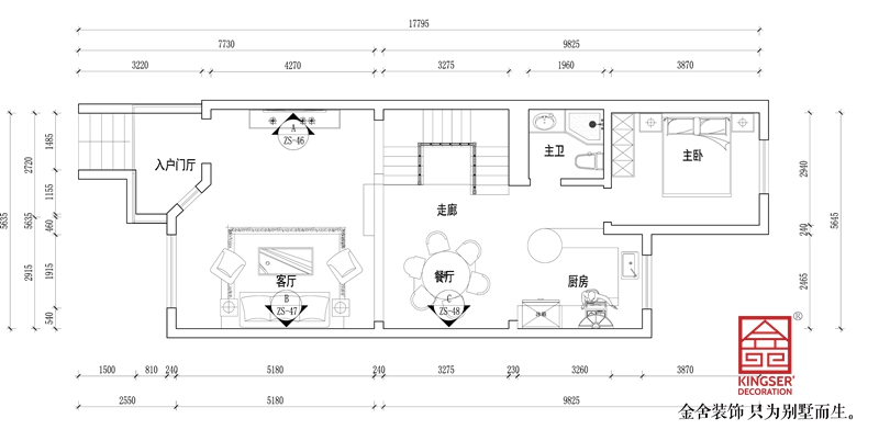 負(fù)一層:把原有的一個(gè)空間分為兩個(gè)獨(dú)立的空間,增加了公共衣帽間,提供一個(gè)功能區(qū),同時(shí)也保證了臥室的獨(dú)立性和私密性。