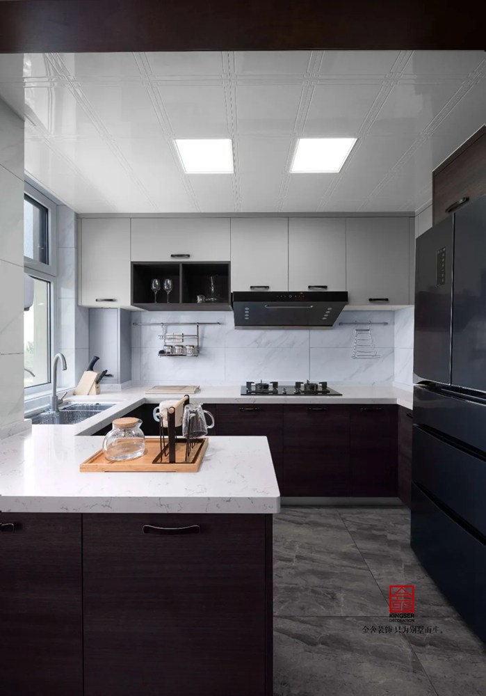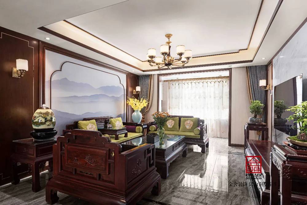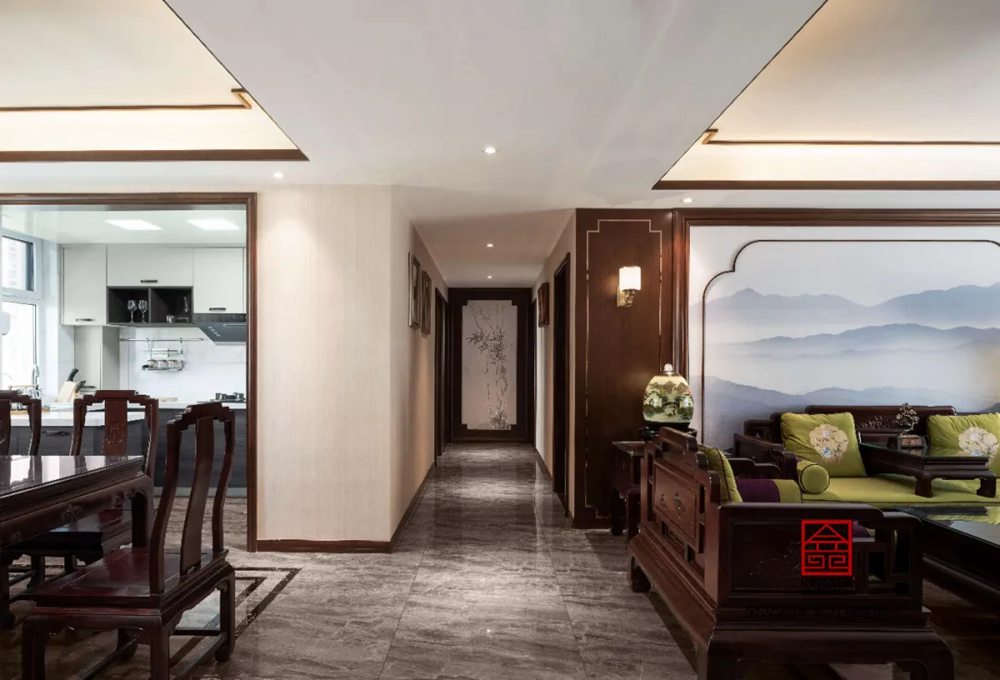 金舍裝飾-祥云鳳凰福邸158平米中式風(fēng)格裝修實(shí)景。中式設(shè)計(jì)風(fēng)格往往自成一股靜氣,自然安靜的材質(zhì)、素雅的色調(diào)、享受紛繁都市中的詩意棲居。“幾何”成就了新中式韻調(diào)的“形”,“濃墨”突顯新中式的格調(diào)之“深”。閑云潺石,松木花鳥,即便是再抽象的現(xiàn)代化情景表達(dá),也能融入片刻精彩的中式韻致。