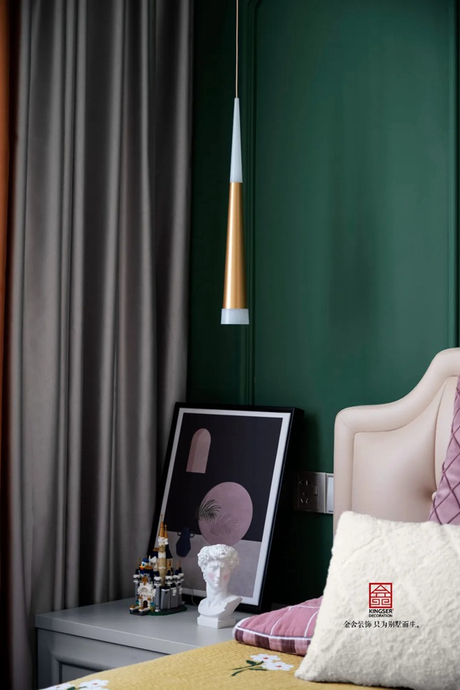 臥房空間設(shè)計(jì)的溫馨艷麗,給人帶來無限的遐想,仿佛置身于美麗童話的懷抱之中,能夠嗅到家居幸福的味道,感受到家居設(shè)計(jì)的無限魅力。