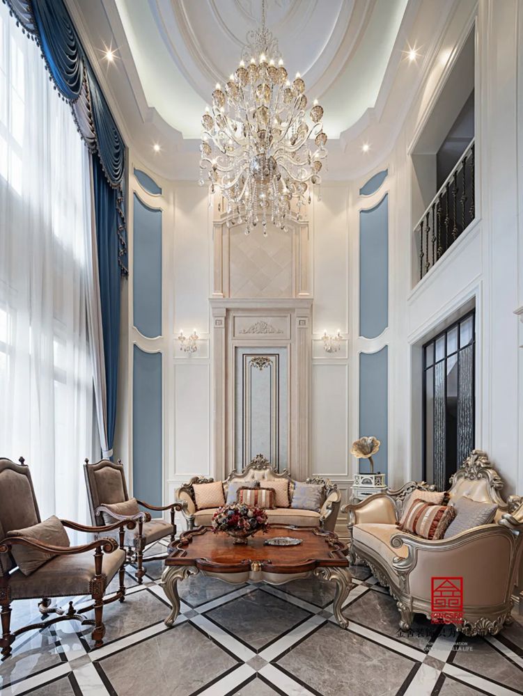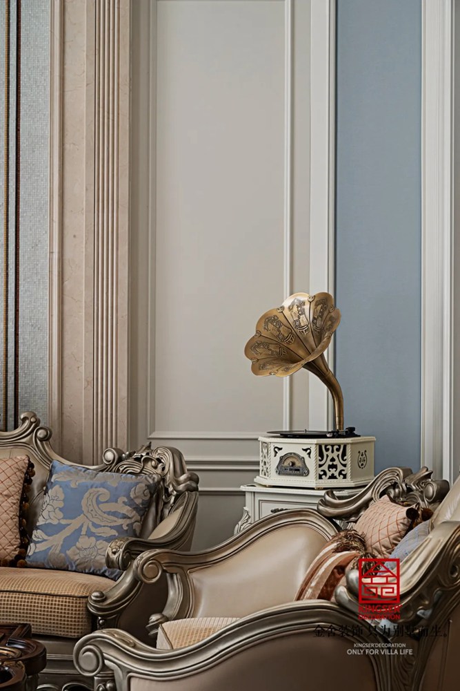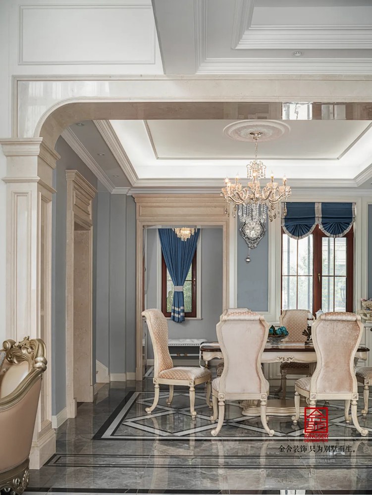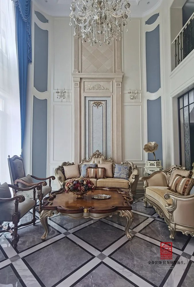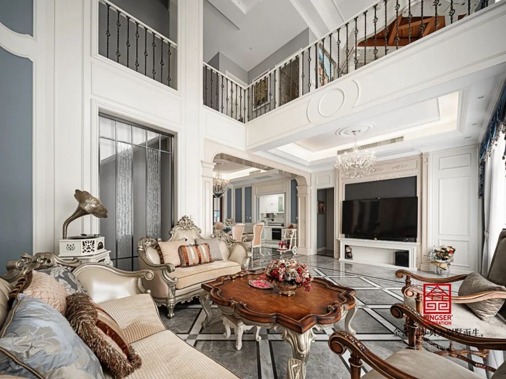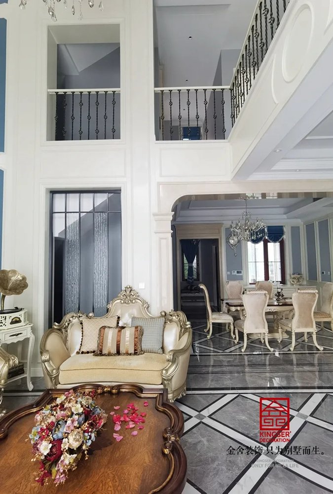 別墅的生活可以很豐富也可以很簡單,淡雅的顏色象征高潔的品質,落落大方的裝飾點綴著幸福的夢,每一個材料的選擇,每一個家居的搭配都是生活的趣味與感慨,高挑的空間中承載了人們美好的未來。歐式的沙發,搭配同色系的碰撞,優雅,華貴,但是恰到好處。