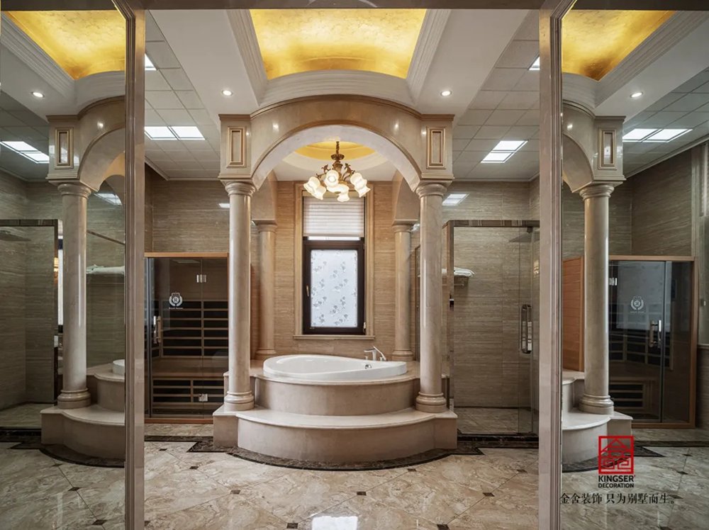 高挑華麗的主人衛生間將功能分隔到小空間后,剩下的就是和諧浪漫的情景和氣氛了。