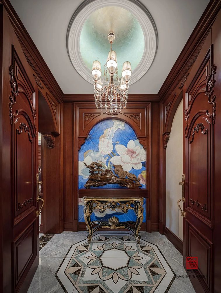 此案例為石家莊金舍裝飾-無極御瓏華府2400平米別墅歐式風格裝修實景。御瓏華府“中西合璧”這是一套集“土建+硬裝+軟裝+庭院”一體的全案設計,占地東西70米,南北50米,整個結構坐落于小區的核心位置,打開家門,先是私有的庭院生活,再而迎面就是小區的綠化水系,視野開闊,一覽全景。方案設計為“中西合璧”風。浪漫的歐式古典風融入東方設計元素,嶄新的文化底蘊得以傳承,既有歐式的富貴典雅又有中式的文化底蘊,二者巧妙應用,提升整個空間氣質。
