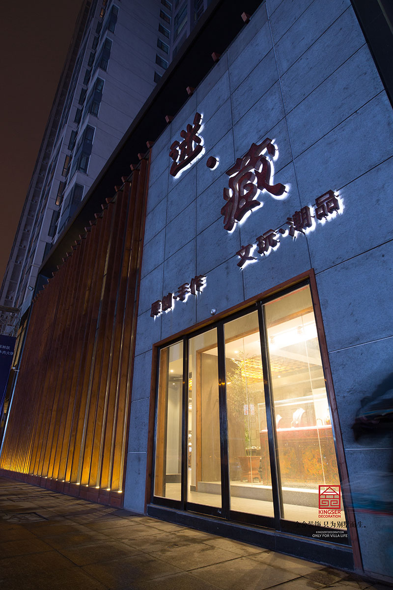 坐落在人流量巨大的萬達步行街,這個與周圍“格格不入”的門面。從門面到店內的裝飾,從總體的設計理念至角落的一張石凳,石家莊金舍裝飾設計師在整體空間中細致拿捏著靜謐與活躍、樸素與奢華、當代與傳統的關系,運用現代造型手法,并賦予優雅的東方氣質。