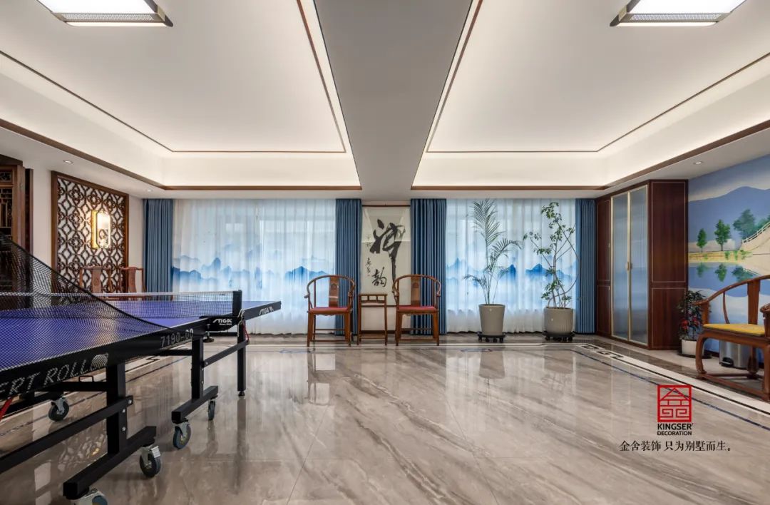 一個(gè)家居會(huì)所最不能缺少的就是娛樂(lè)的空間,乒乓球臺(tái)和影音室,晨沐朝霞、夜觀星斗,總有人想要脫開(kāi)繁復(fù)的人事交集,體味中式元素之廣博。