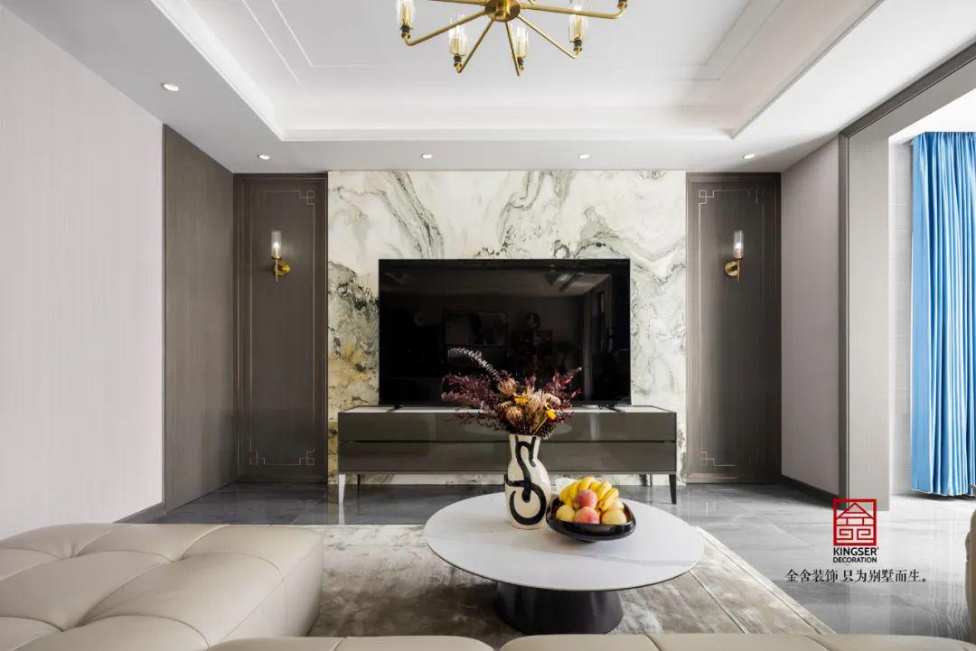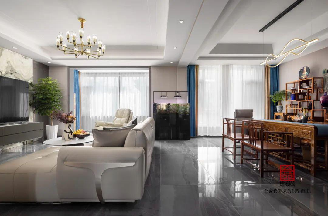 混搭的風(fēng)格讓空間看起來十分的特殊,現(xiàn)代輕奢的客廳與中式的書房合二為一,客戶是中年夫妻,對于生活還是十分有品味的。