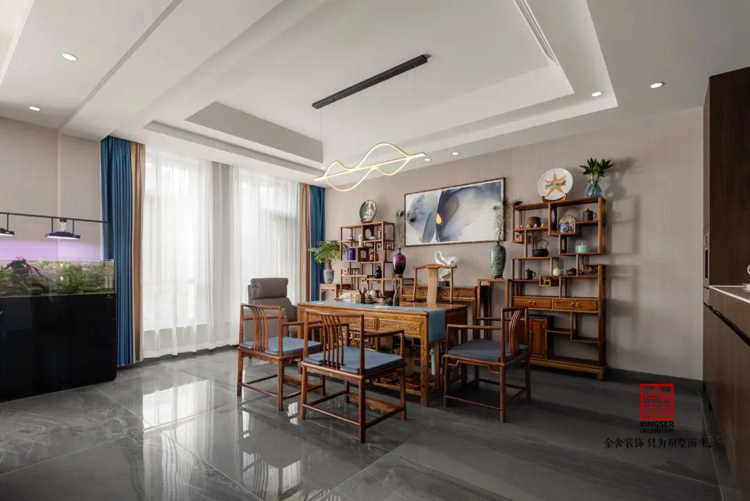 書房和喝茶的功能合二為一,喝喝茶,養(yǎng)養(yǎng)魚,寫寫字,陶冶下情操,可以說這就是一個中年人的天堂,隨時都能找到自己的樂趣,隨時都能保持身心最好的狀態(tài)。