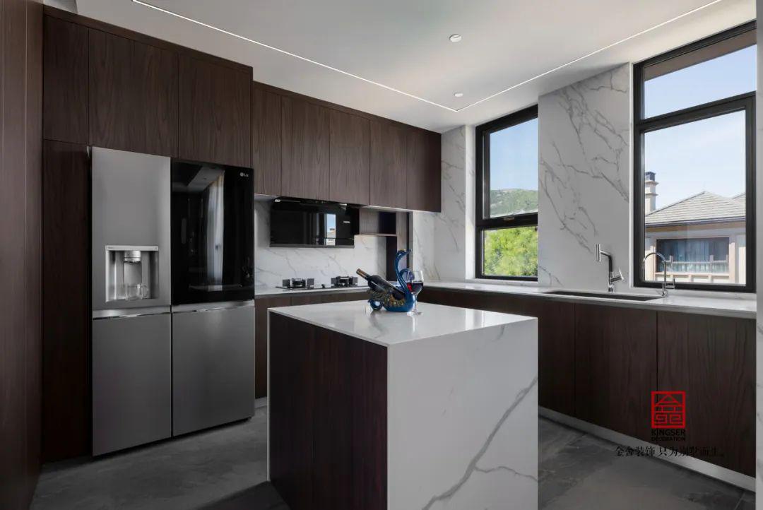黑白紋理的巖板和同色系的中導(dǎo)臺,在這個空間中透出一種時尚的味道。