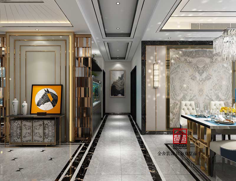此案例為石家莊金舍裝飾-榮盛華府185平米港式風格裝修效果圖。港式風格家居也有其自身特點,多以金屬色和線條感營造金碧輝煌的豪華感,簡潔而不失時尚。