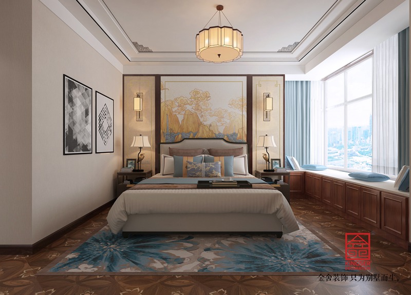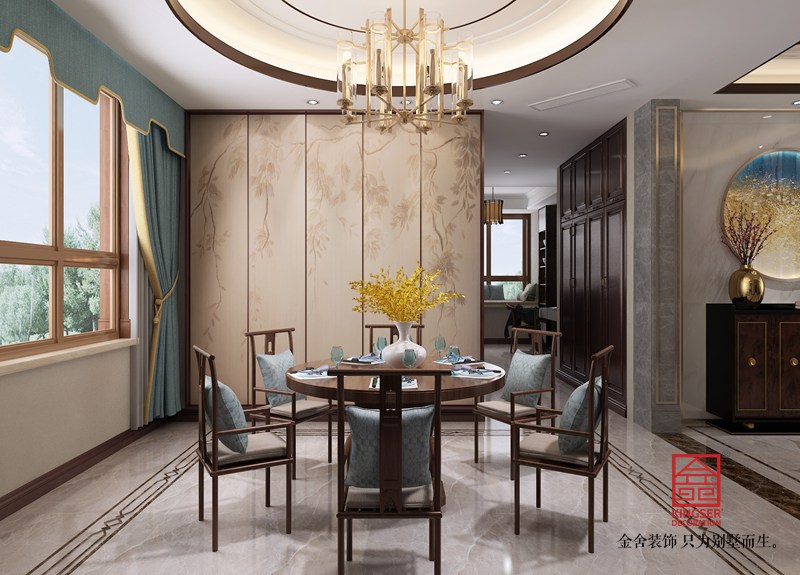 設計說明:此案為石家莊金舍裝飾-榮盛華府200平米中式風格裝修效果圖。本案采用了現代的設計語言來表達東方的意境,用新中式風格打造出蘊含禪意的家居空間,隱去傳統中式繁雜的設計表現,用減法來表達東方元素。