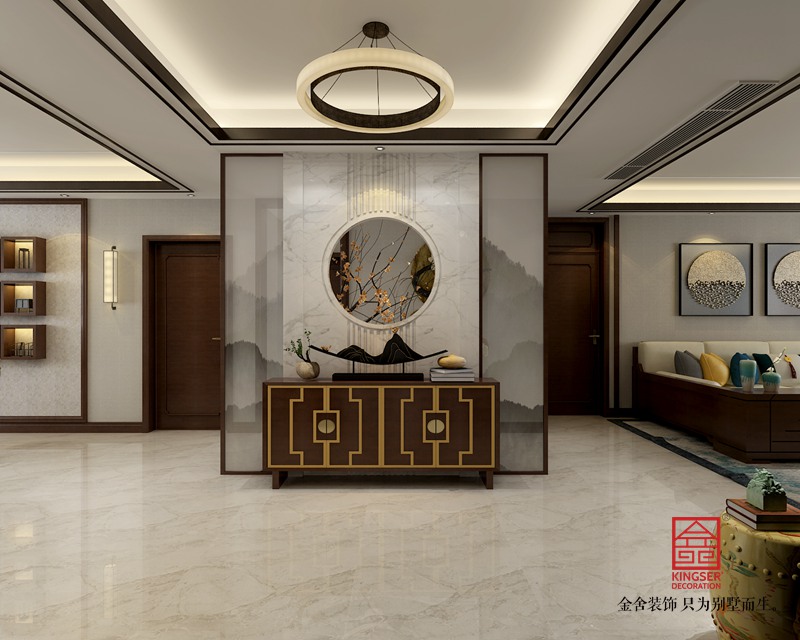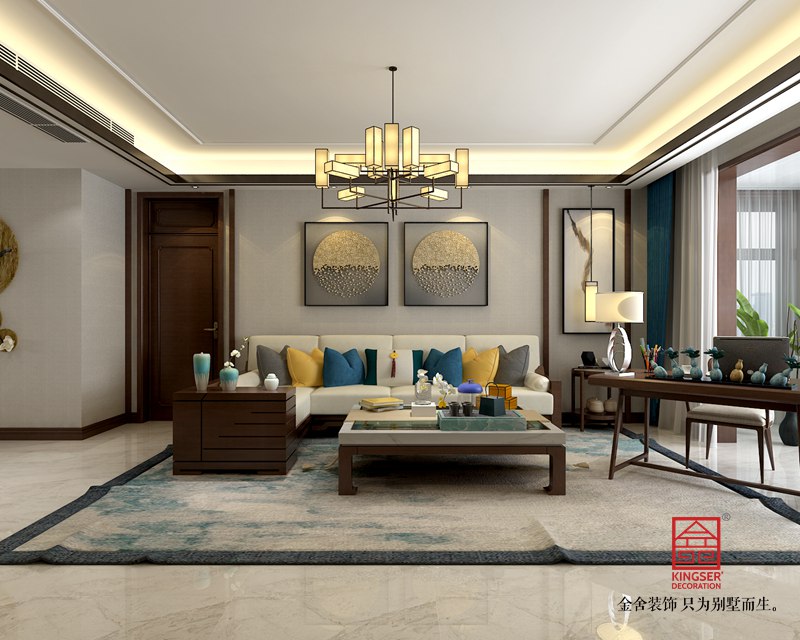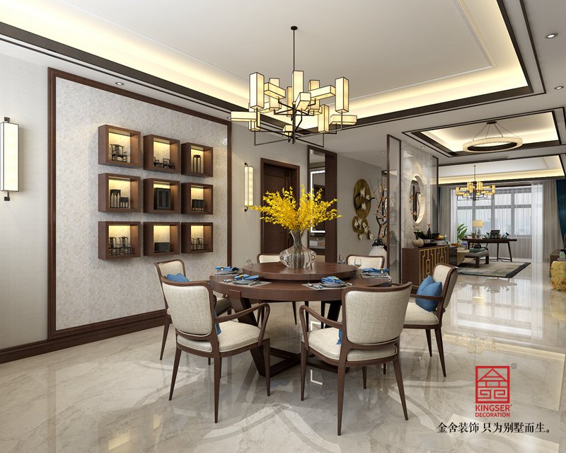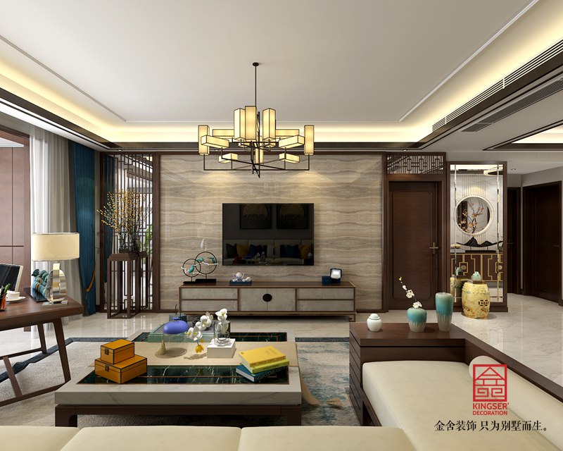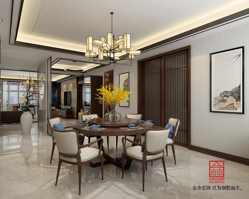 本案為石家莊金舍裝飾-御河上院176平米新中式風格裝修效果圖。位于河北石家莊正定新區的一套大平層豪宅度假房。根據項目的特點,設計師在設計風格定位時采用現代中式風格,通過合理的空間規劃,材質與色彩的精心拿捏,營造出一處富有尊貴感和人文特色的中國式家居空間。