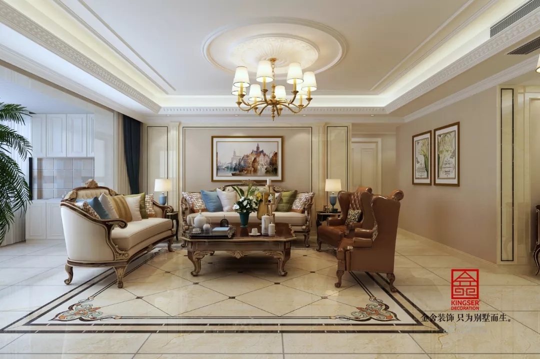 此案例為石家莊金舍裝飾-榮盛華府185平米簡歐風(fēng)格裝修效果圖。