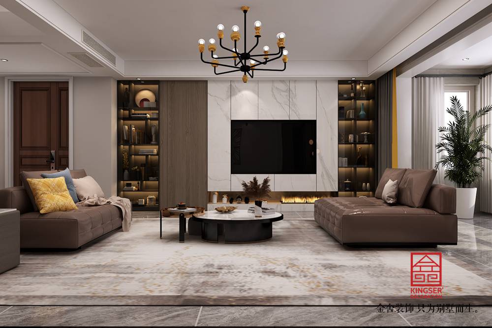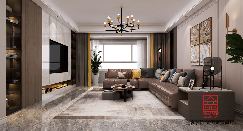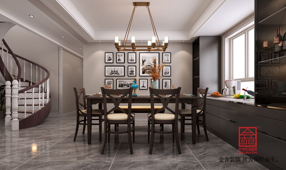 設計說明:本案例是金舍裝飾-東南智匯城191平米現代美式風格裝修效果圖。總體設計風格是現代風格偏點美式風格。現代風格在室內裝飾設計方面它主要注重強調功能性設計,線條簡約流暢,色彩對比強烈,這是現代風格家具的特點。