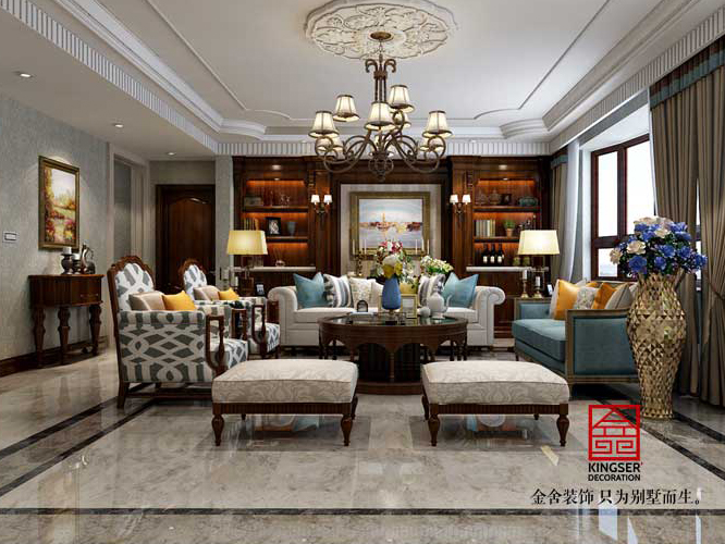 此案例為石家莊金舍裝飾-國賓壹號189平米歐式風格裝修效果圖。電視背景墻采用豎條紋壁紙使整個空間在視覺上更加高挑,背景墻旁搭配復古形狀的臺燈,盡顯雅致,茶幾上擺放復古的相框和花束作為裝飾,讓空間更為清新自然,石膏吊頂,搭配精致的水晶吊燈、復古的壁畫,營造出一種懷舊、浪漫的感覺,仔細觀察,即使是一個小地方,一件擺件的挑選,起承轉合間,空間里有了色彩注入,有了細節規劃,讓家氛圍豐富而現代。