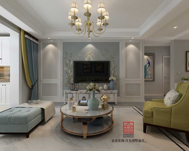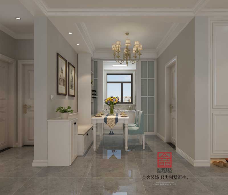 石家莊金舍裝飾-?維多利亞136平米美式風(fēng)格裝修效果圖。美國是一個崇尚安閑的國家,這也造就了其安閑、隨意的不羈日子方式,沒有太多做作的潤飾與束縛,不經(jīng)意中也成果了其他一種休閑式的浪漫,而美國的文明又是一個移植文明為主導(dǎo)的頭緒。現(xiàn)代美式風(fēng)格,尋求綺麗、高雅的古典風(fēng)格。居室色彩主調(diào)為白色。家私為古典彎腿式,家私、門、窗漆成白色。擅用各種花飾、豐厚的木線改動、綺麗的窗布帷幄是西式傳統(tǒng)室內(nèi)裝飾的固定方式,空間環(huán)境多表現(xiàn)出華美、綺麗、浪漫的空氣。