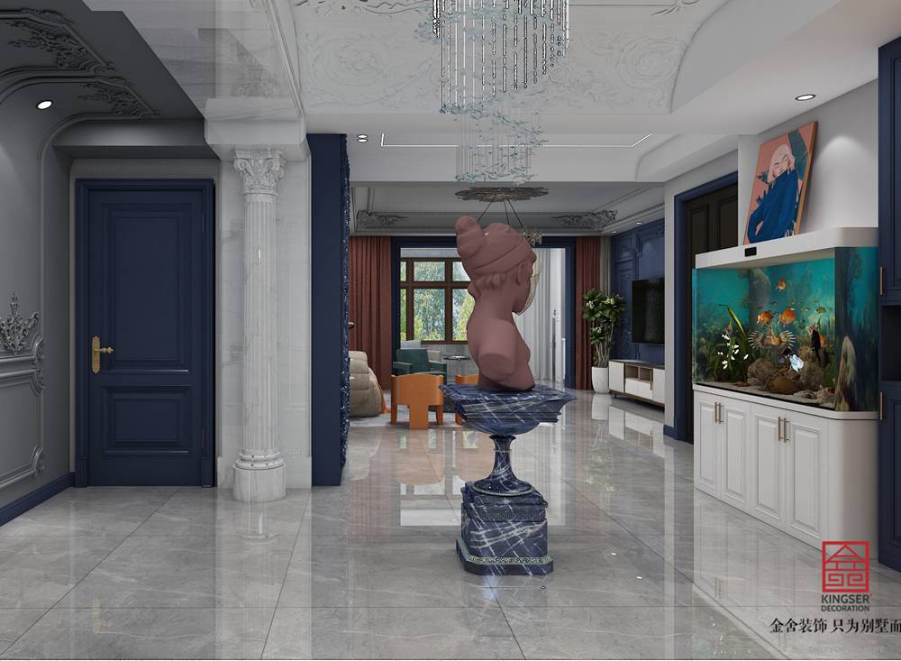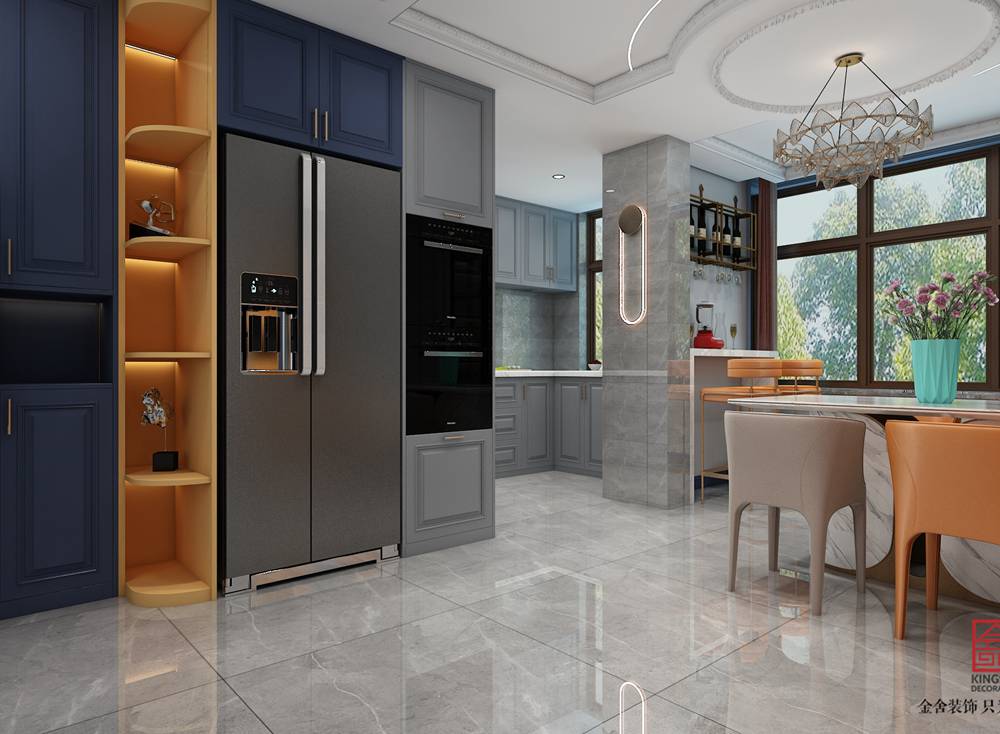 石家莊裝修公司-榮盛華府178平米美式輕奢風格裝修效果圖。有一種奢華崇尚匠心獨具的精致與尊貴有一種風格凝聚華貴典雅與浪漫氣息似細膩柔美的情歌似宮廷奢華的極致輕盈而華麗,細膩而優雅永恒的時尚,曼妙的身姿。如同時空穿越,既有十五世紀法式的奢華,又有當代輕奢的藝術手法,從古希臘已有的科林斯柱式到現代極簡的柔美線條,是個時代的碰撞與融合。這種浪漫情調為家賦予了萬種風情。