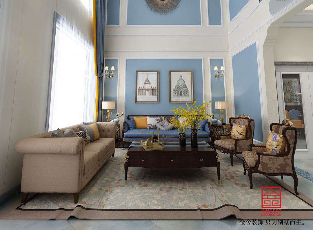 此案例為石家莊金舍裝飾-碧桂園280平米美式風格裝修效果圖。美國人務實的性格特點決定了他們在家居生活中,以“舒適”為第一目標的態度。房子不僅僅要美觀,更重要的是要讓住在其中的人感到舒適和溫暖,美式風格的精髓就體現在這種平實的生活中。了解并領悟美式生活的精髓,汲取美式生活中典型的符號元素,再輔以居住的便利性設計,才能做出有質感的美式設計。