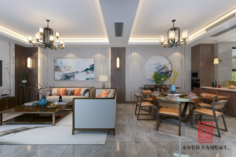 此案例為石家莊金舍裝飾-龍湖天宸原著210平米新中式風格裝修效果圖。每個人的成長環(huán)境受到的思想并不相同,或古樸、或現(xiàn)代、或激進、或保守,但是永遠繞不開的就是中式風格對我們的影響,選擇中式風格的人秉承著中式文化對自我的洗禮。其中中式風格的家居傳承著傳統(tǒng)風格的精髓,通過與現(xiàn)代潮流的對話產(chǎn)生創(chuàng)新,它是中國傳統(tǒng)美學在現(xiàn)代生活的重新演繹。對新中式風格有著深厚情懷的人而言,為自己打造一個清新淡雅的新中式家居,不僅可以撫慰煩躁的內(nèi)心世界,更是一種生活品質(zhì)享受。