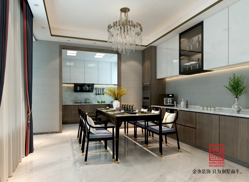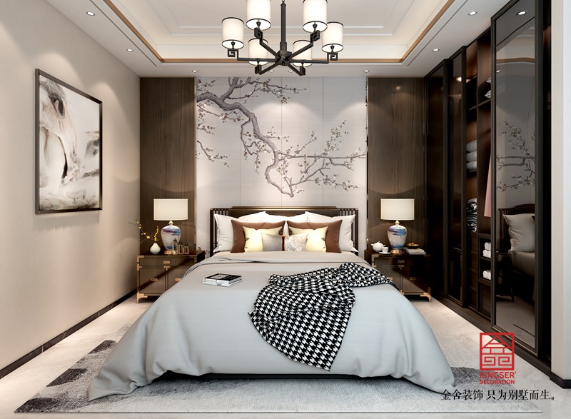 此案例為石家莊金舍裝飾-龍湖天辰原著200平米新中式風格裝修效果圖。本案選取中式風格中的顏色、樣式做主基調再配合現代簡約風格的簡潔、自然、流暢來打造出現代中式的風格。在對空間的重疊利用中,加強空間的利用率和美觀度,現代中式風格將中式古典元素和現代簡約風格的簡潔、自然、流暢設計手法,兩者的長處有機結合,其精華之處在于以內斂沉穩的古意為出發點,既能體現中國傳統神韻,又具備現代感的新設計、新理念等,從而使家居兼具古典與現代的神韻。也表達出業主對清雅含蓄、端莊豐華的東方精神意蘊境界的追求。