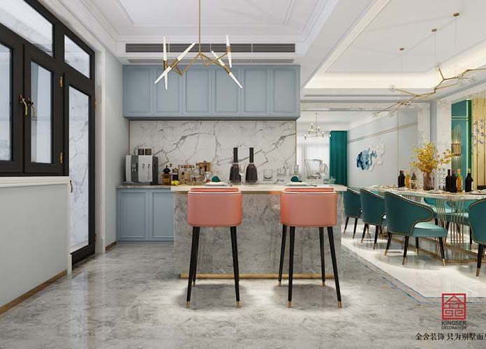 設(shè)計(jì)說(shuō)明:此案例為石家莊金舍裝飾-林蔭大院260平米輕奢風(fēng)格裝修效果圖。設(shè)計(jì)之美不應(yīng)全倚仗修飾,而應(yīng)該醉在靈魂。金屬的高貴冷感,更易與小物件和小細(xì)節(jié)催生出默契,精致的輕奢氣質(zhì)點(diǎn)睛而出。