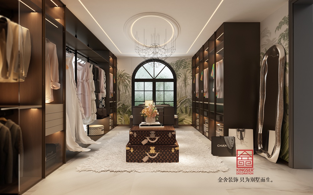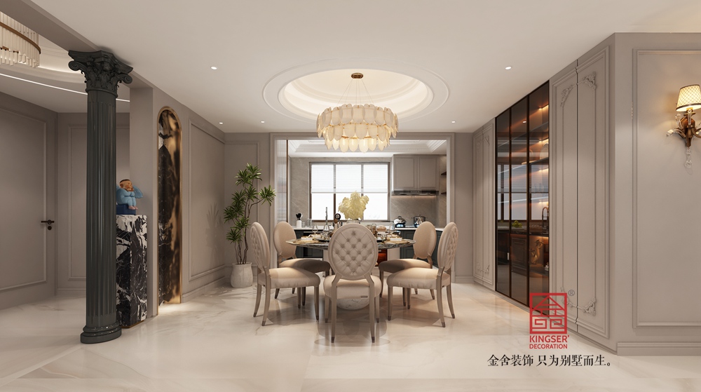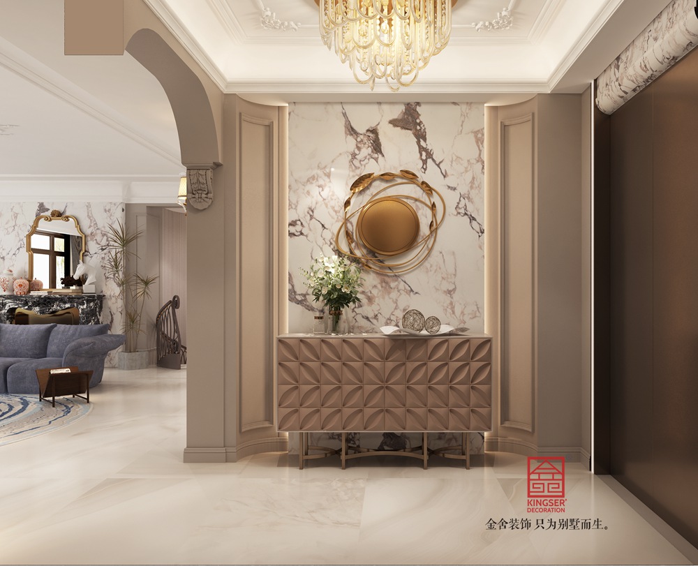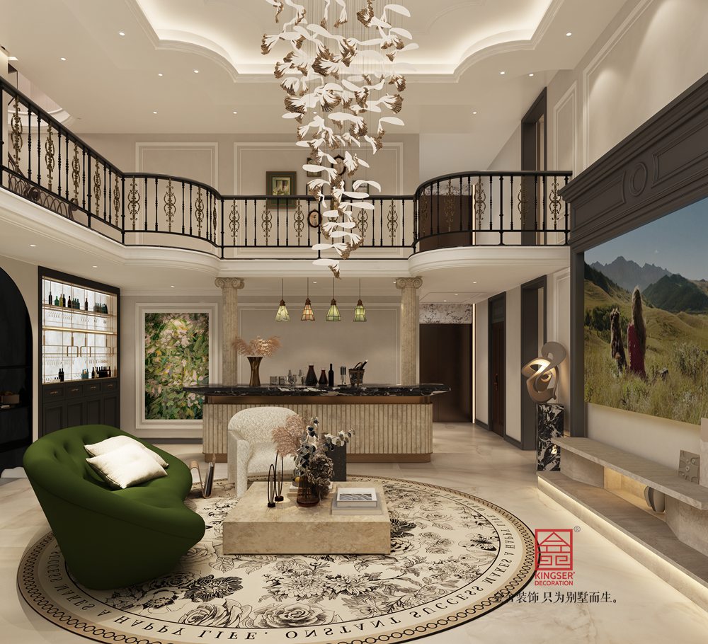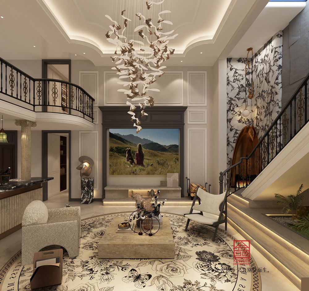 本案挑空客廳以新古典風(fēng)格為基底,融合現(xiàn)代設(shè)計(jì)語(yǔ)言。運(yùn)用經(jīng)典的石膏線、護(hù)墻板勾勒空間秩序,搭配簡(jiǎn)約造型的家具與藝術(shù)吊燈,既保留古典的優(yōu)雅韻味,又注入當(dāng)代的時(shí)尚與靈動(dòng),實(shí)現(xiàn)傳統(tǒng)與現(xiàn)代的對(duì)話。
