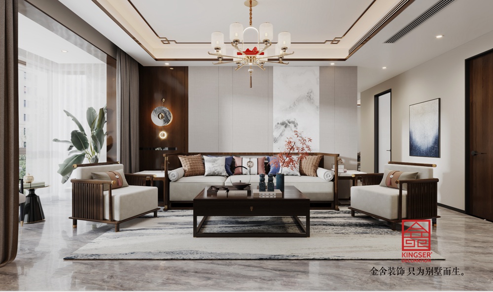 大面采光結(jié)合輕紗窗簾,讓自然光輕柔灑落,與室內(nèi)的綠植、掛畫等相互映襯,營造出 “天人合一” 的意境,打造出一個既有傳統(tǒng)文化底蘊(yùn),又符合現(xiàn)代生活需求的舒適居所。