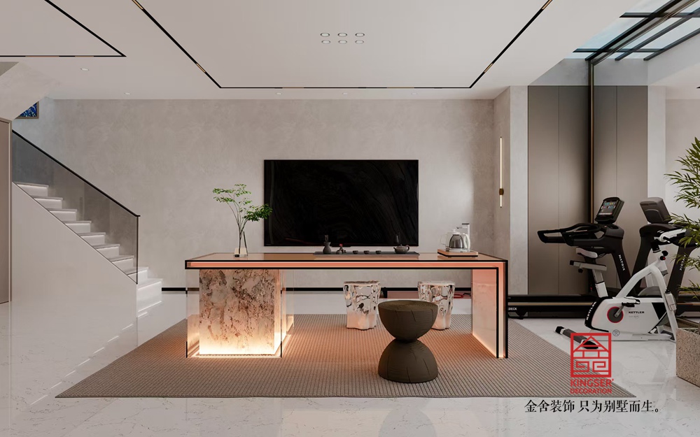 設計說明:該客廳以 “極簡美學與輕奢質感的共生” 為設計理念,從空間布局、材質運用到細節塑造,展現出別墅生活的雅致與舒適。